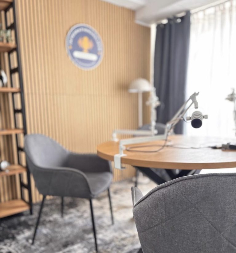 Jetzt ist unser Studio wie ein kleines Wohnzimmer. Mit bequemen Stühlen, gemütlichen Beleuchtung und Zeit für echte Gespräche.